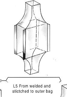 Com barbatanas em 4 lados costuradas verticalmente com a bolsa externa de PP |